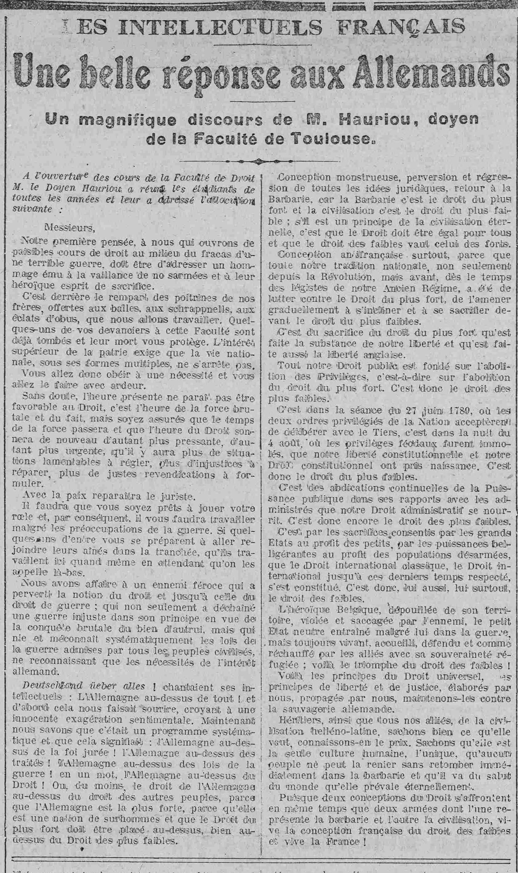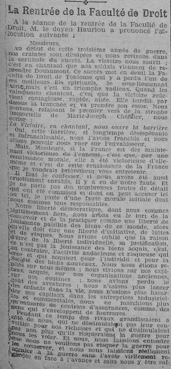 - Deans caught in the war – Toulouse and Maurice Hauriou