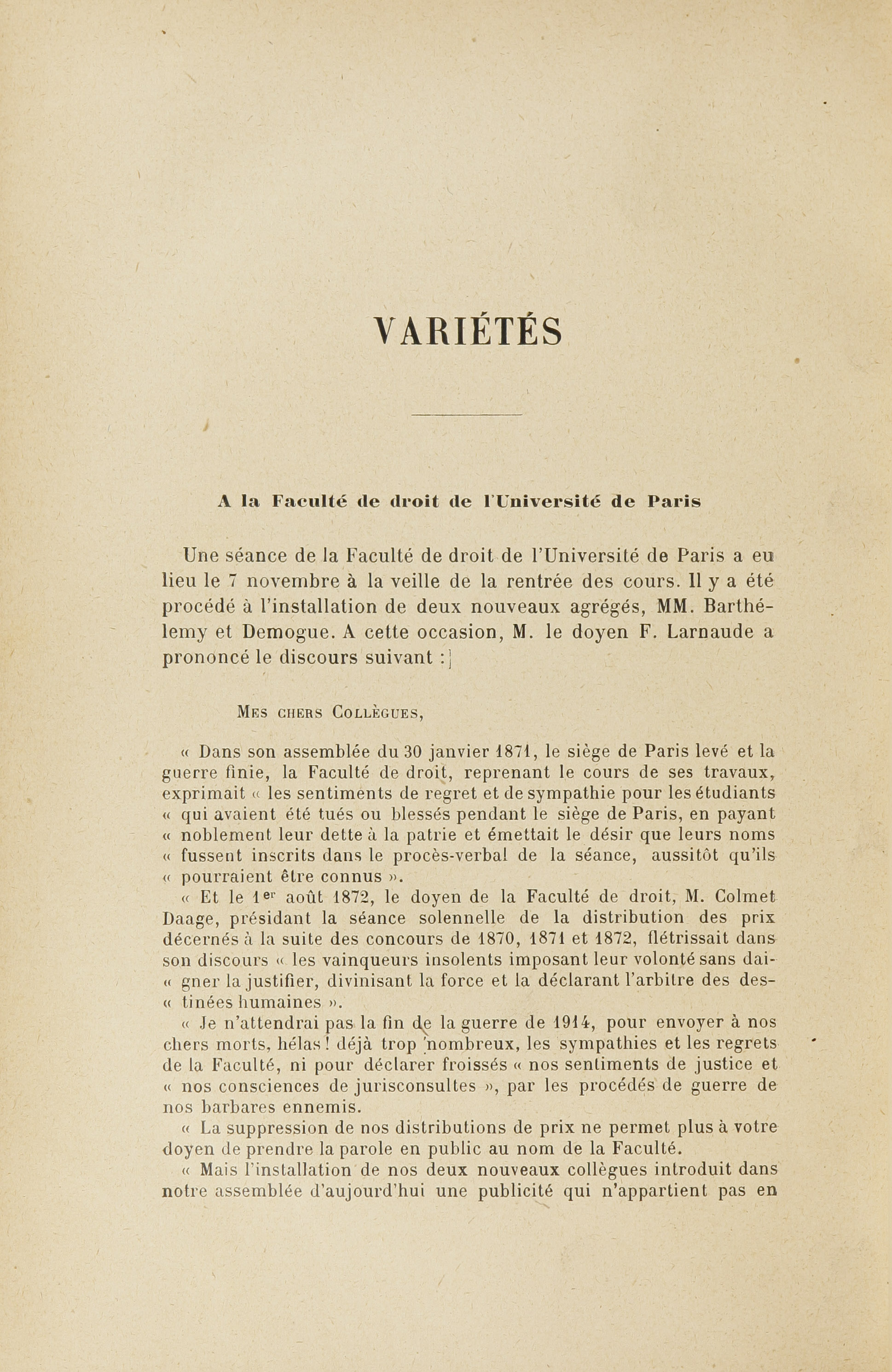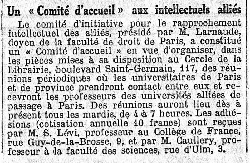 - Deans caught in the war – Paris and Ferdinand Larnaude