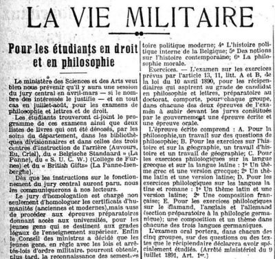 The German invasion, in August 1914, pushed part of the student population into the army. They were forced to interrupt their higher education. The necessities of war prevented the resumption of structured scholarly activity in the first months after the German invasion. It was only a year later, in September 1915, that there was a desire among the army and conscripts for a resumption of studies. This desire was expressed by the army medical auxiliaries, who had not had the opportunity to take their last medical doctorate finals and who wanted to see an examination panel organized so that they could complete their education and obtain their degree. The War Department vetoed it : the organization of an examination panel for students of the 3rd doctoratepour lire la suite…