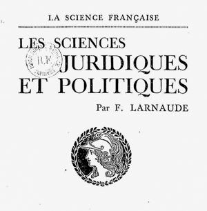 Larnaude Ferdinand, Les sciences juridiques et politiques, « La science française », Paris, France, Larousse, 1915.