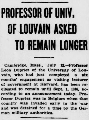 On the eve of the war, in 1914, the Leuven Faculty of Law had fifteen tenured professors, and two professors emeriti. Some of these professors has another profession on top of teaching. They were, for some of them, active in the Catholic Party, and the cumulation with a political mandate, at the local or national level, or with a ministerial position was quite common. The war affected their activities in several ways. The start of the war and the events of August 1914 particularly brutally affected the city of Leuven, and the university even more. On August 2, 1914, Germany sent an ultimatum to the Belgian government. Less than forty-eight hours later, the first houses were set on fire near the German border. On August 5, the Belgianpour lire la suite…