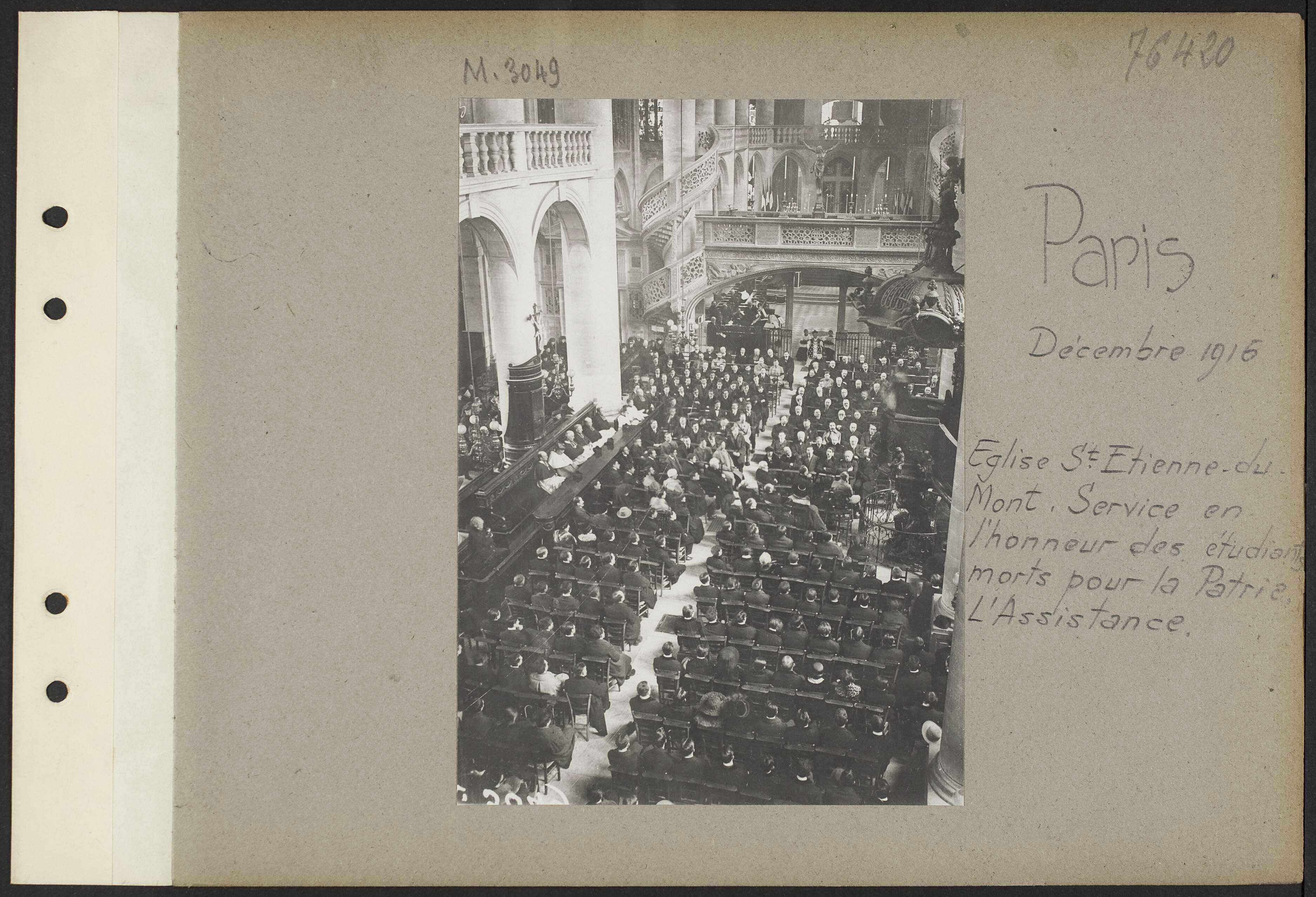 Eglise St-Etienne du Mont. Service en l'honneur des étudiants morts pour la patrie. L'assistance, Paris, December 1916.